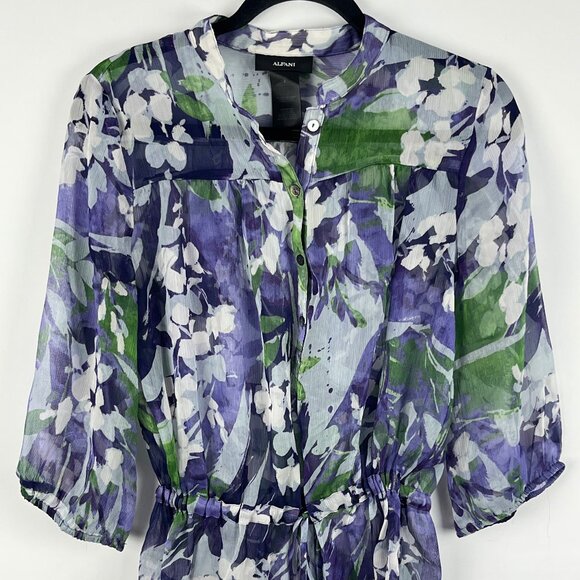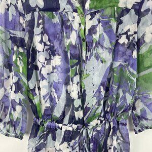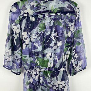 Alfani Top Blouse Size 4 Multicolor Floral See Through 3/4 Sleeve Polyester