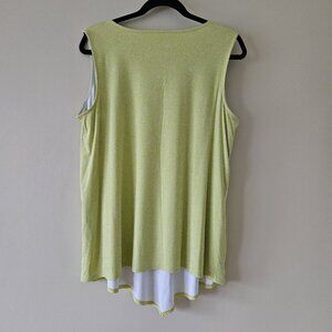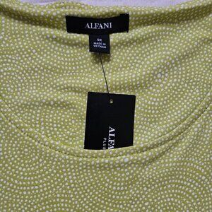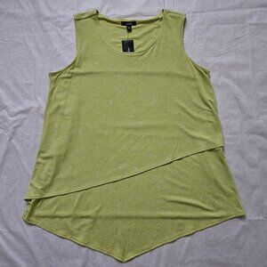 Alfani Top Women's Plus Size 0X US12 Neon Green Mayan Circle Asymmetrical Boho