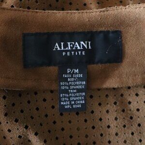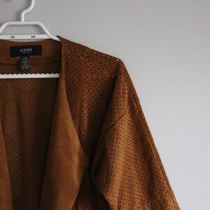 Alfani Women's Brown Sz MP Brown Faux Suede Open Front Casual Eyelet Jacket