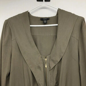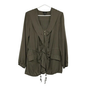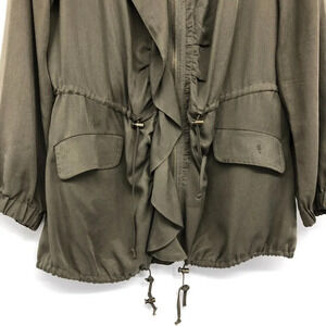 Full zip, long sleeves, drawstring at the waist and two hip pockets