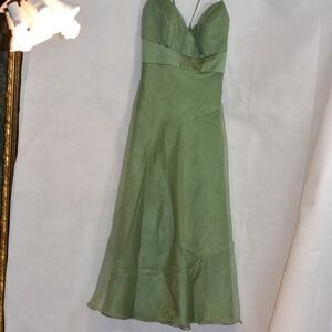 Alfred Angelo Green Organza-type Spaghetti Strap Dress SZ 16