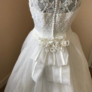 Alfred Angelo Sleeveless Mesh Satin Beaded Bodice Bridal Gown Tulle Skirt Train