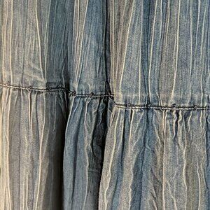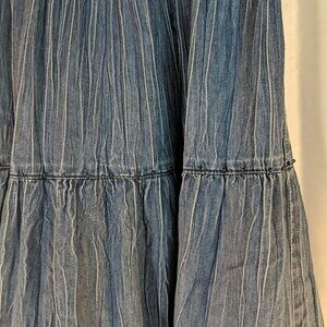 Alfred Dunner Beaded Denim Maxi Skirt 12P Elastic Waist Blue Jean Boho Midi