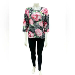 Alfred Dunner NWT Floral Quarter Sleeve Top Pink/Black/Green/White Size PM