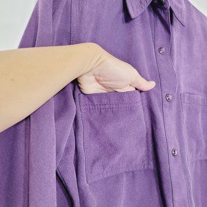 Alfred Dunner Petites Long Sleeve Casual Button Down Soft Shirt Purple Womens 6P