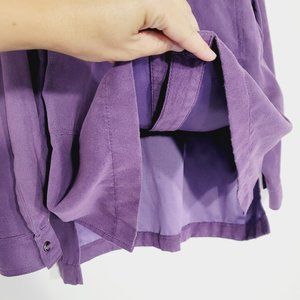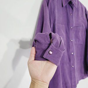 Alfred Dunner Petites Long Sleeve Casual Snap Button Front Shirt Purple Womens Collared Double Pocket Classic Retro Style