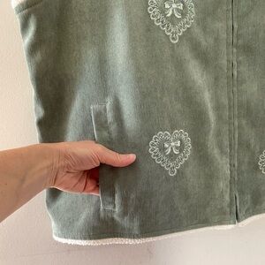 Light sage green corduroy vest with embroidered hearts & tiny beads.