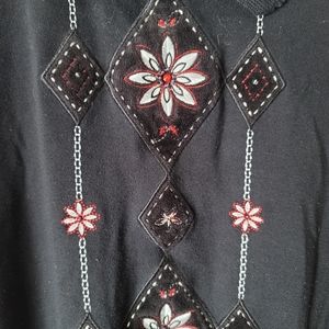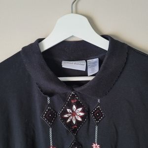 Alfred Dunner Vintage Embroidered Grandma Sweater Size XL Size Black