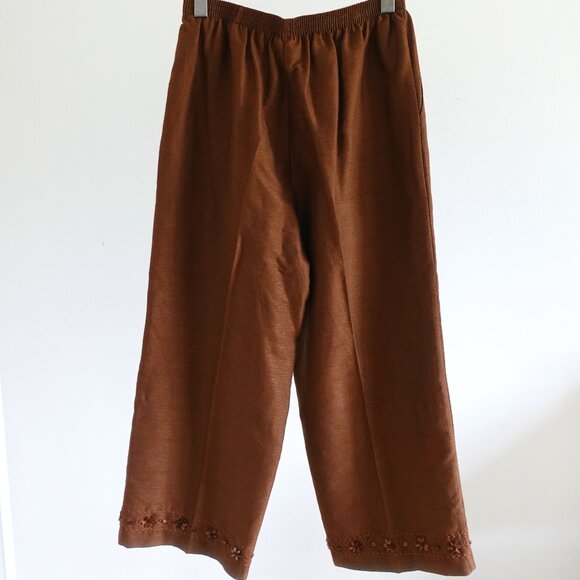 Alfred Dunner Women's Brown Drawstring Pants with Beaded Hem Detail