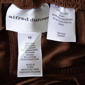 Elevate your wardrobe with these elegant Alfred Dunner women's pants, perfect for any casual or semi-formal occasion. Crafted from a luxurious blend of 52% silk, 39% rayon, 7% ramie, and 2% cotton, these pants offer both comfort and sophistication.