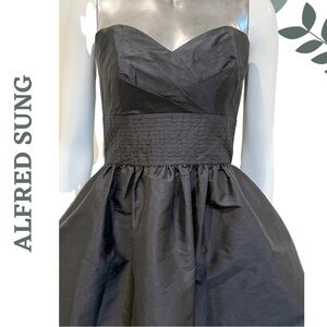 Alfred Sung Black Strapless Fit & Flare Taffeta Dress with Pockets Size 6