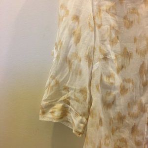 Light and airy the sleeves can roll up or down.This is 100% cotton and a little see through.