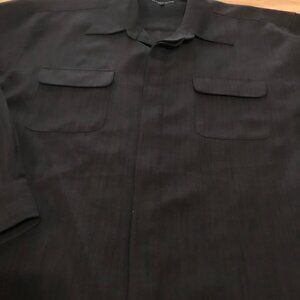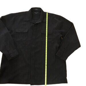 Alfred Sung Men's Black Long-Sleeve Hidden Button-Up Shirt L/G 100% Polyester