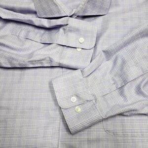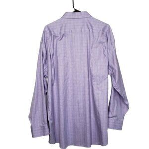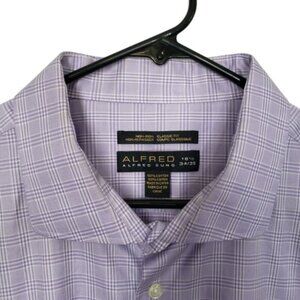 Alfred Sung Men's Checkered Long Sleeve Dress Shirt Cotton Purple Size 18.5
