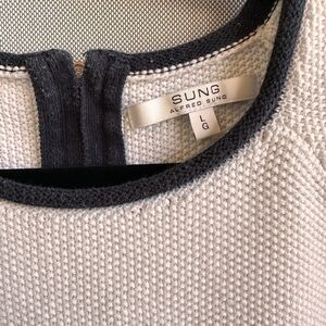 Alfred Sung | Navy & White Striped Cotton Knit Sweater