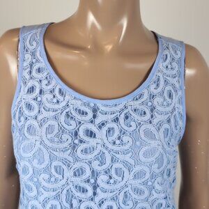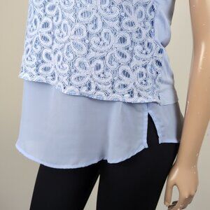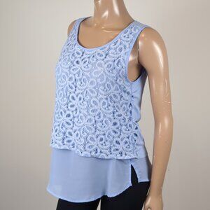 Alfred Sung Periwinkle Lace Sleeveless Top Floral Sheer Chiffon Tunic Hem Blouse