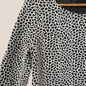 Stretchy black and white textured top. Small zipper mat the back. Excellent condition. Size M.