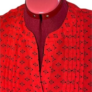 Alfred Sung sleevess pleated front back yoke and gathers black dot print