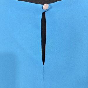 Discover elegance with this stunning blue midi dress, featuring graceful ruffle sleeves. Ideal for any event, it offers a sophisticated and flattering fit. * one small stain in pictures