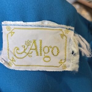 Algo Vintage Elegant Blue Ruffle Sleeve Midi Dress Size L