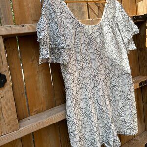 Gorgeous Ali & Jay Tower Bar Lace Romper in black and white, size large. Does not come with belt, unfortunately it is lost. Could you another black belt or ribbon. In excellent used condition, smoke free home.