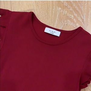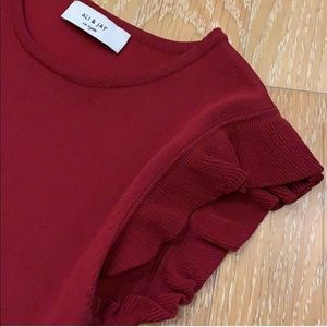 Slips over head and falls below the knee. Ruffle sleeves and bottom.