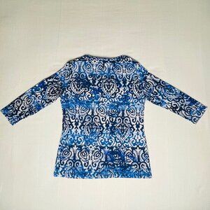 Alia Blue & White Patterned 3/4 Sleeve Top – Size XS
