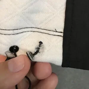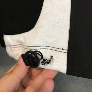 Tightening strings at bottom for adjustment. (Please see pictures, metal loop came apart from fabric but tightening strings still work.)