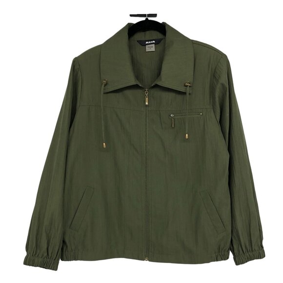 Alia Moss Green Full Zip Up Shirt or Lightweight Jacket size 10