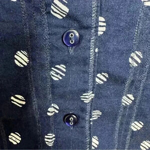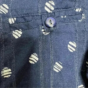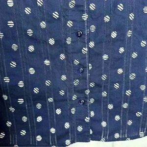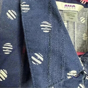 Alia Petites Blouse Button-Up Collared Shoulder Pads Blue & White Size 14P