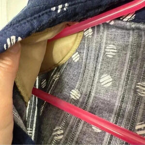 Alia Petites Blouse Button-Up Collared Shoulder Pads Blue & White Size 14P