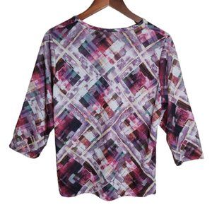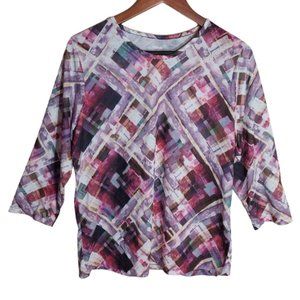 Alia Pink/Purple Block Print Top Size: L 3/4 Sleeves Pull-on style 100% Polyester Very Good Condition