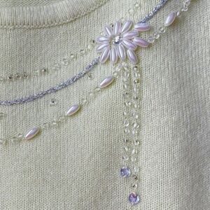 Alia Vintage pale green sweater pearl detail beads crew neck long sleeve Medium