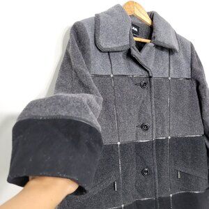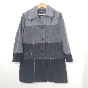 Alia Womens Wool Blend Colorblock Long Jacket Coat Shades Of Gray Size 12 Button-Front Peacoat Business Casual