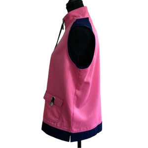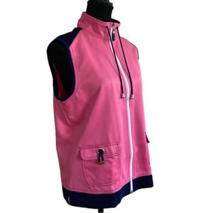 Alia pink & navy full zip vest with front pockets, drawstring neck. Size…