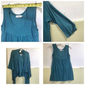 Alice Blue NEW Twin Set Drape Open Cardigan & A-Line Tank Top Cotton Knit Drapey