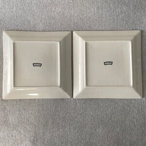 Lot of 2 beautiful retired Alice in Wonderland 9" x 9" square plates by Fishs Eddy. Off-white with black design.