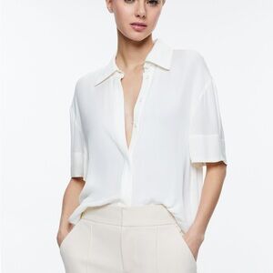 This easy, silky top was created to make you feel pulled-together instantly. It features a collared neck, relaxed fit and button down with hidden placket. Tuck her or wear her loose over trousers, she'll look good either way.