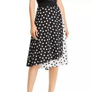 Alice + Olivia B&W Nanette Polka Dot Faux Wrap Silk Skirt - 6