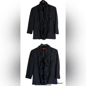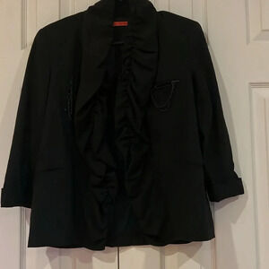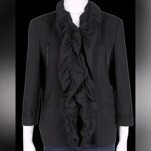 Alice + Olivia Black Ruffle Jacket Blazer, Size Small