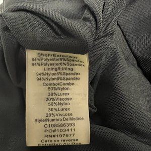 Allover glitter details. Mock turtleneck. Sleeveless. Elastic waist. Exposed sequin underlay at hem.
