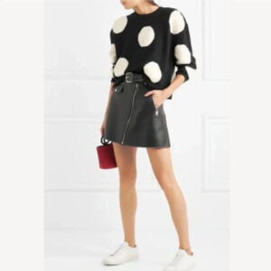 Alice + Olivia Gleeson Polka-dot Boxy Long-sleeve Pullover Sweater Wool Black M