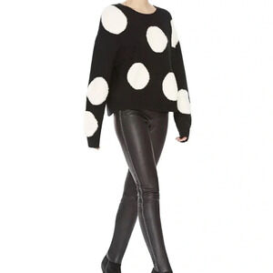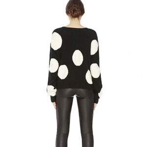 Alice + Olivia Gleeson Polka-dot Boxy Long-sleeve Pullover Sweater Wool Black M