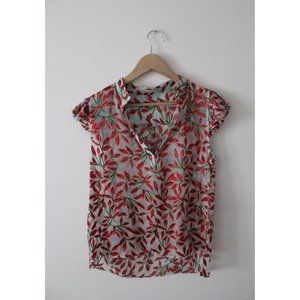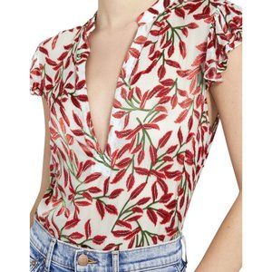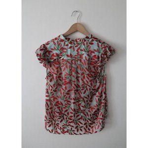 Alice & Olivia Malita Ruffle SIlk Blouse Dancing Leaf Powder Blue Size Medium