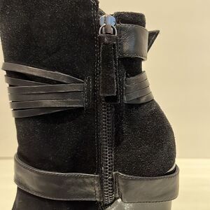 Alice + Olivia Owen Pointy Toe Wedge Heel Suede Black Booties Size 36 NWOT