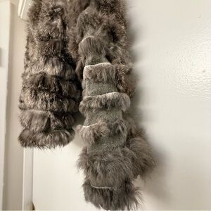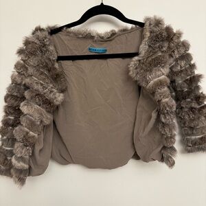 This Alice & Olivia rabbit fur jacket is soft, cozy, and stylish. Fits like an extra small or small.