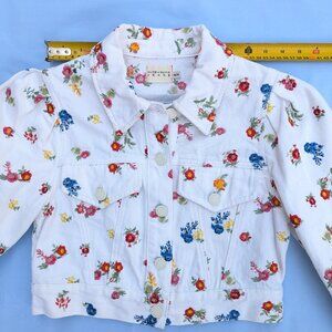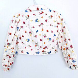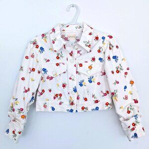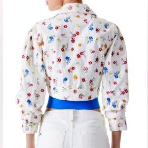 Alice + Olivia Renee Floral Embroidered Cropped Denim Jean White Jacket Size XS