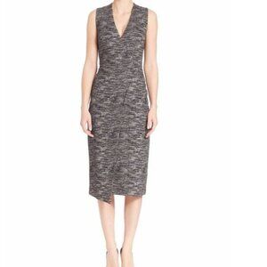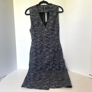 Alice & Olivia Sheath Dress 10 Gray Sleeveless V-Neck Faux Wrap Lined Zipper