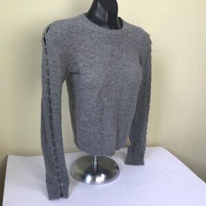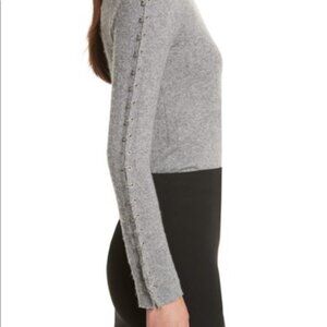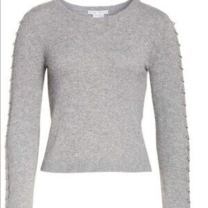 Alice + Olivia Sparrow Grommet Rings Sleeve Sweater Soft Crew Gray Knit Neutral