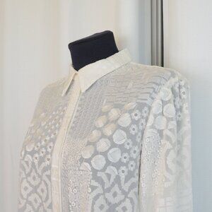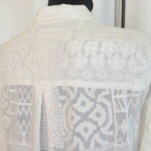 Alice + Olivia Tanisha White Embroidered Patchwork Button Down Tunic Shirt Sz S
